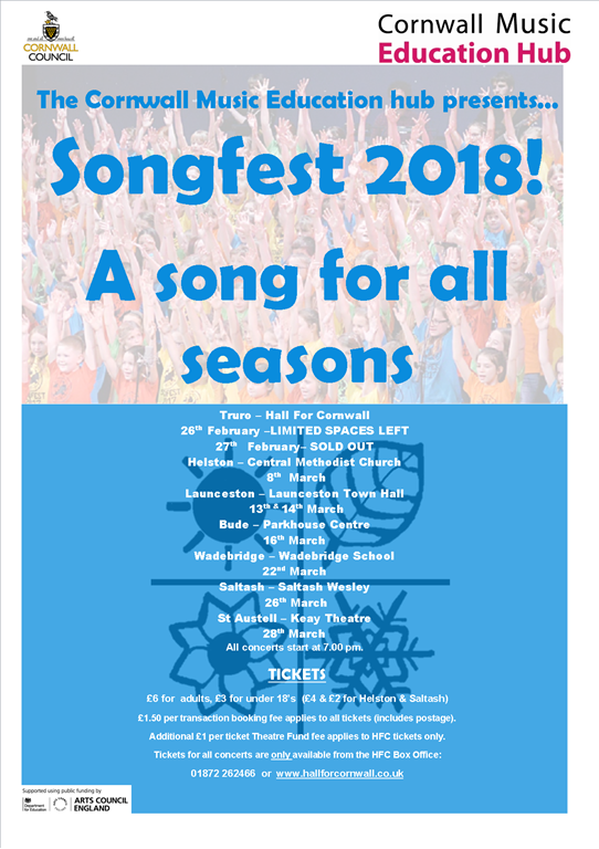 Join the children of Constantine, Cury, Flushing, Godolphin, Mawnan and Perran-ar-worthal as they celebrate the seasons through song as part of the Hub's countywide Songfest event.