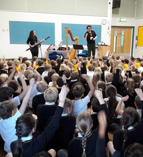The week celebrated some of the lesser seen instruments of the orchestra, to enable children to experience the whole range of instrumental options available to them. Inspired by the new commission of an opera, Burning Boy by Stephen McNeff which was performed at the end of the week, instruments touring the region ranged from horn to harp and double bass and offered children the opportunity to see these instruments up close.