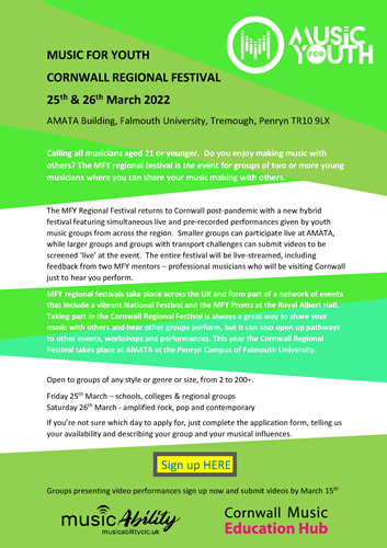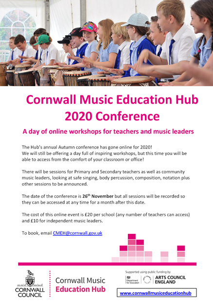 The Cornwall Music Education Hub will champion, celebrate and grow Cornwall’s rich music heritage and, through inclusive, dynamic and innovative learning, will inspire children and young people to achieve their musical potential.